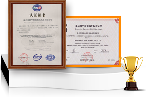 發(fā)電機(jī)組廠家凱華公司已先后通過(guò)ISO9001質(zhì)量認(rèn)證、泰爾認(rèn)證、ISO14001-2001環(huán)境管理體系認(rèn)證、GB/T28001-2001職業(yè)健康安全管理體系認(rèn)證,歐盟CE認(rèn)證、SGS認(rèn)證等。